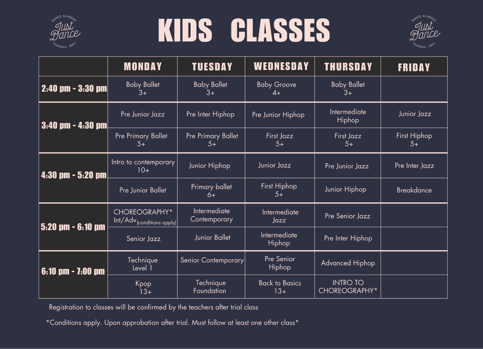 Baby Groove : We take them after they turn 4yo ( better close to 4,5yo). Starting dance so young will teach them rhythm and musicality, make friends and have fun!